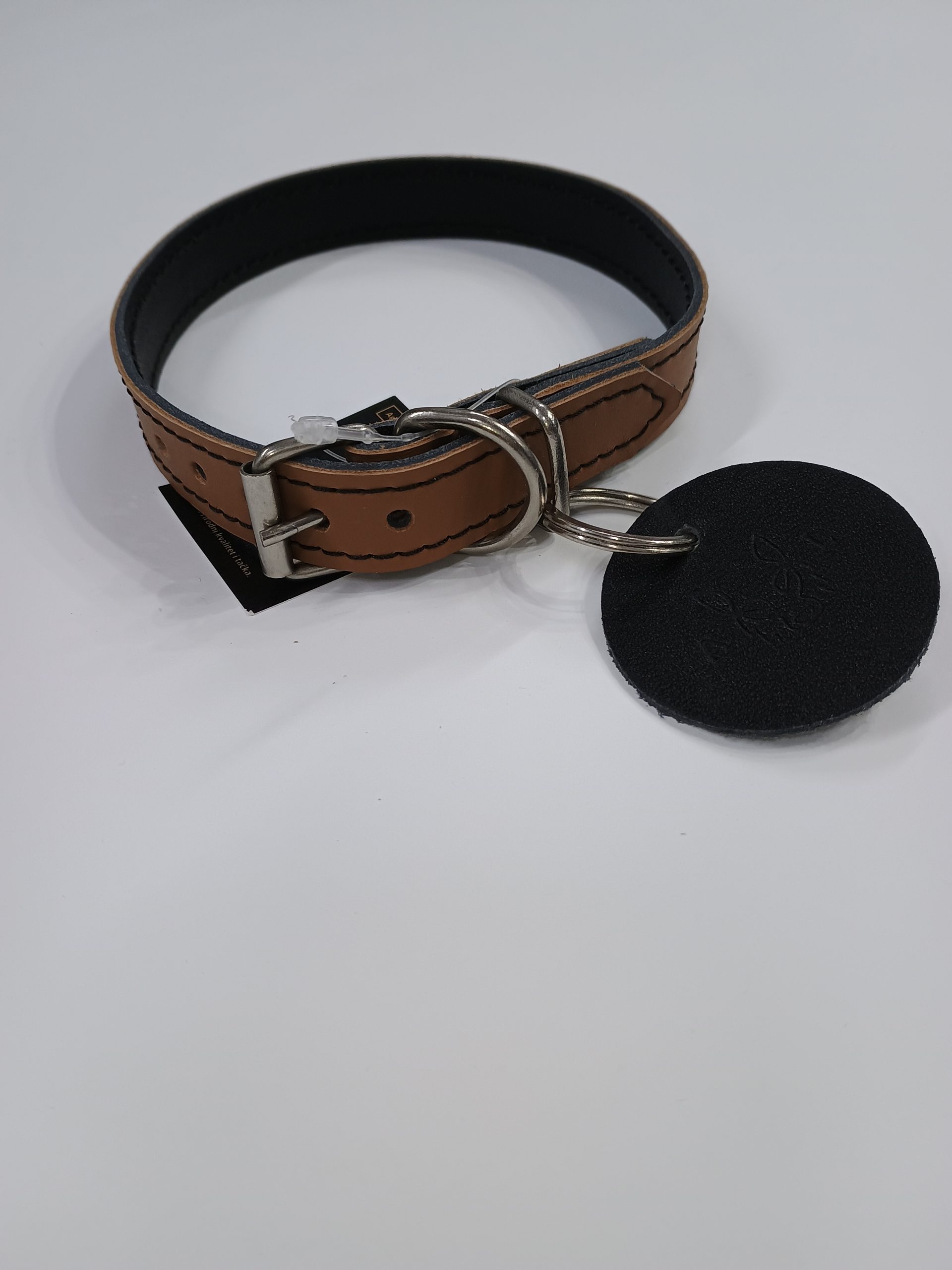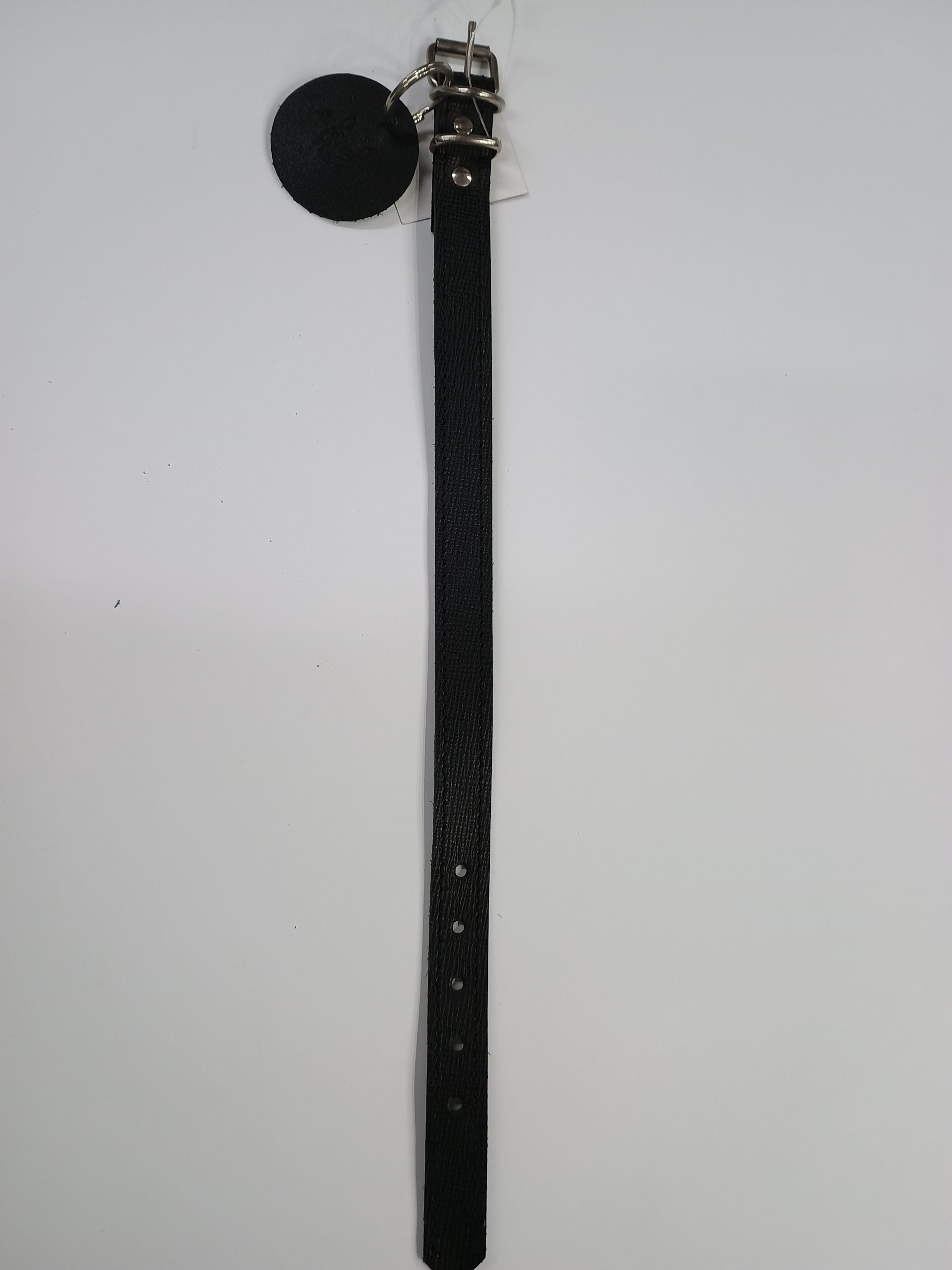 Okovratnik je izrađen od mekane, kvalitetne prirodne kože sa antilop unutrašnjom površinom i pouzdanim metalnim detaljima. Ima simpatičan kožni privezak koji se može koristiti i kao adresar. Pogodan je za male i srednje pse.