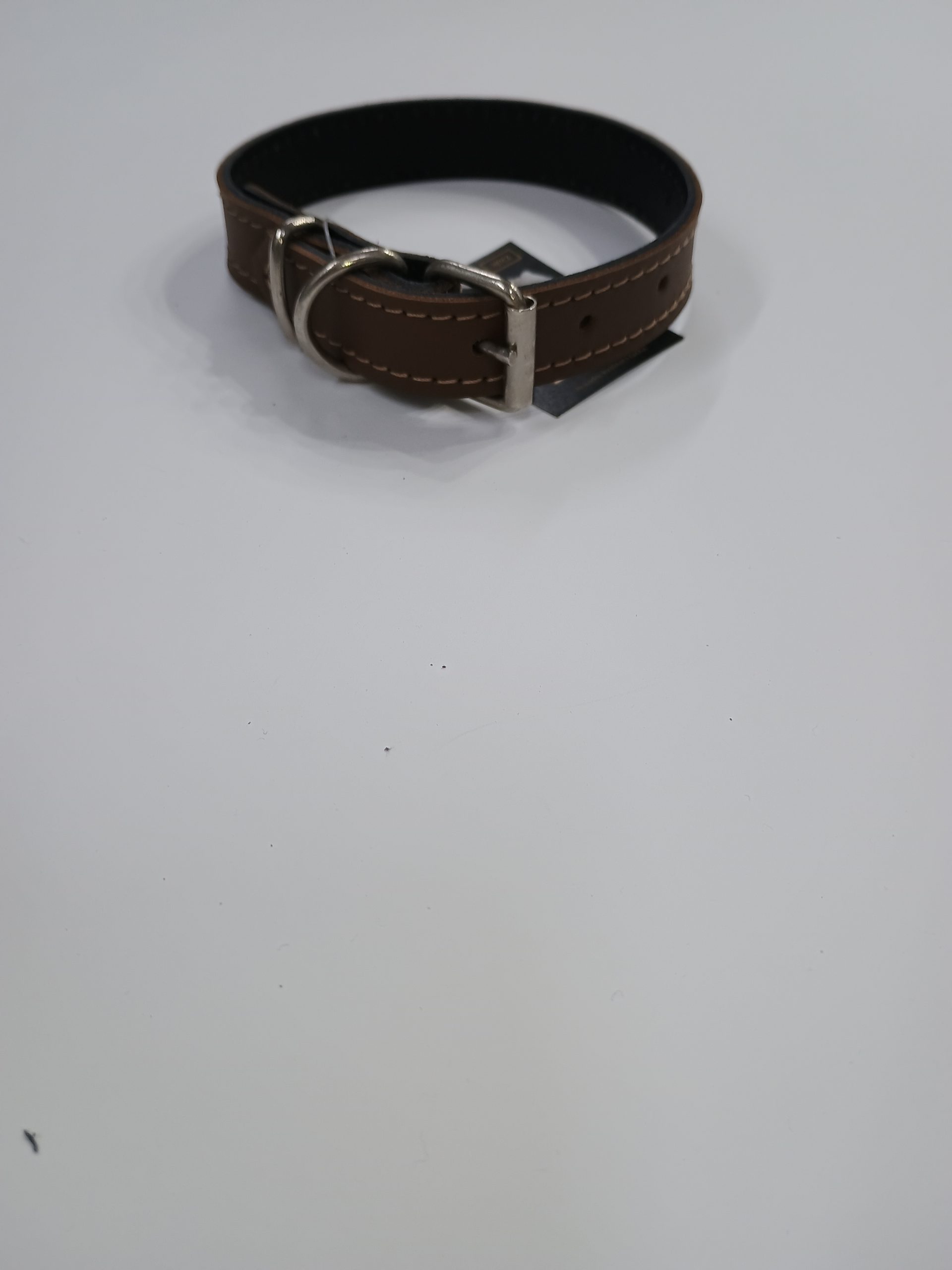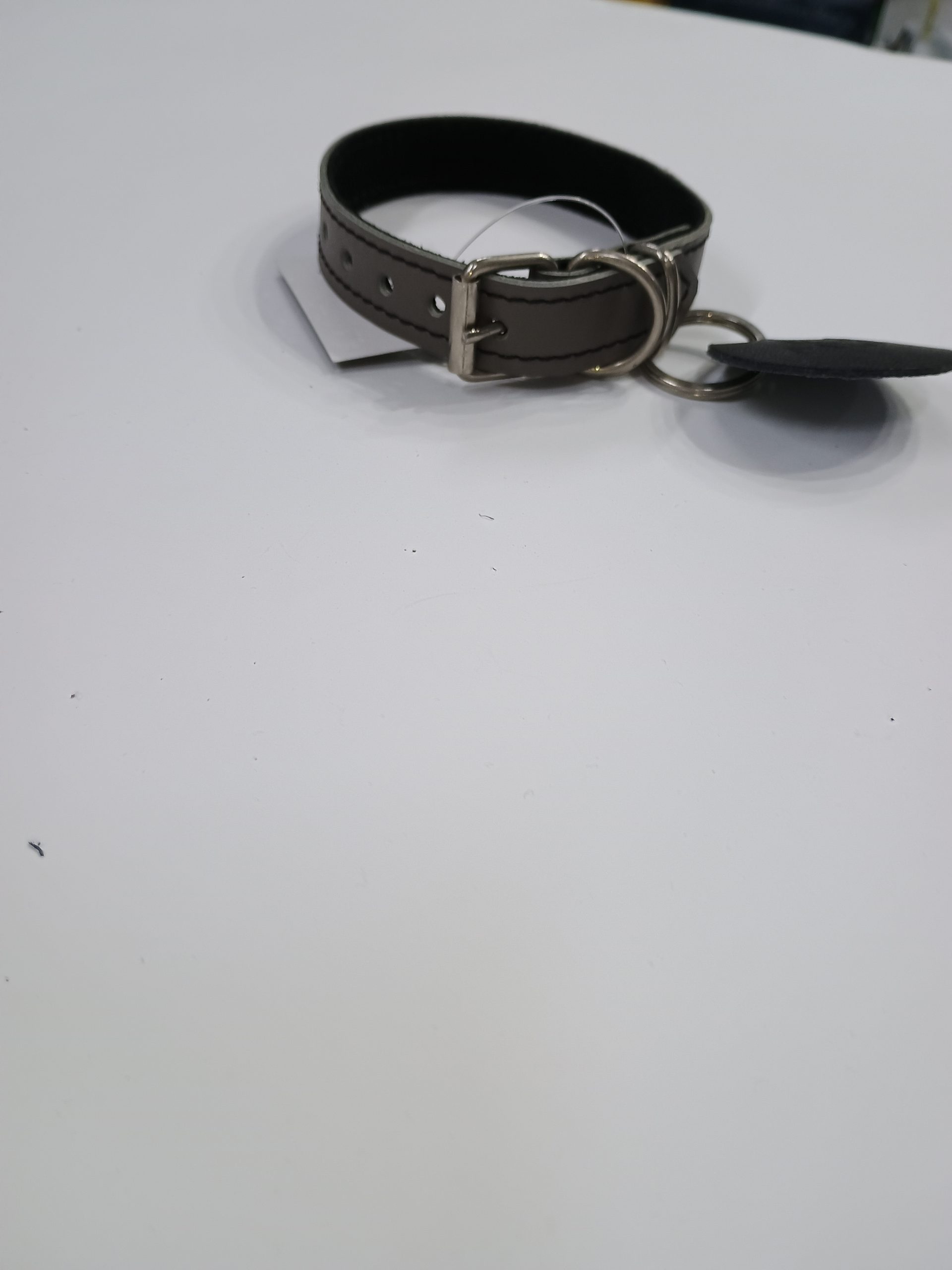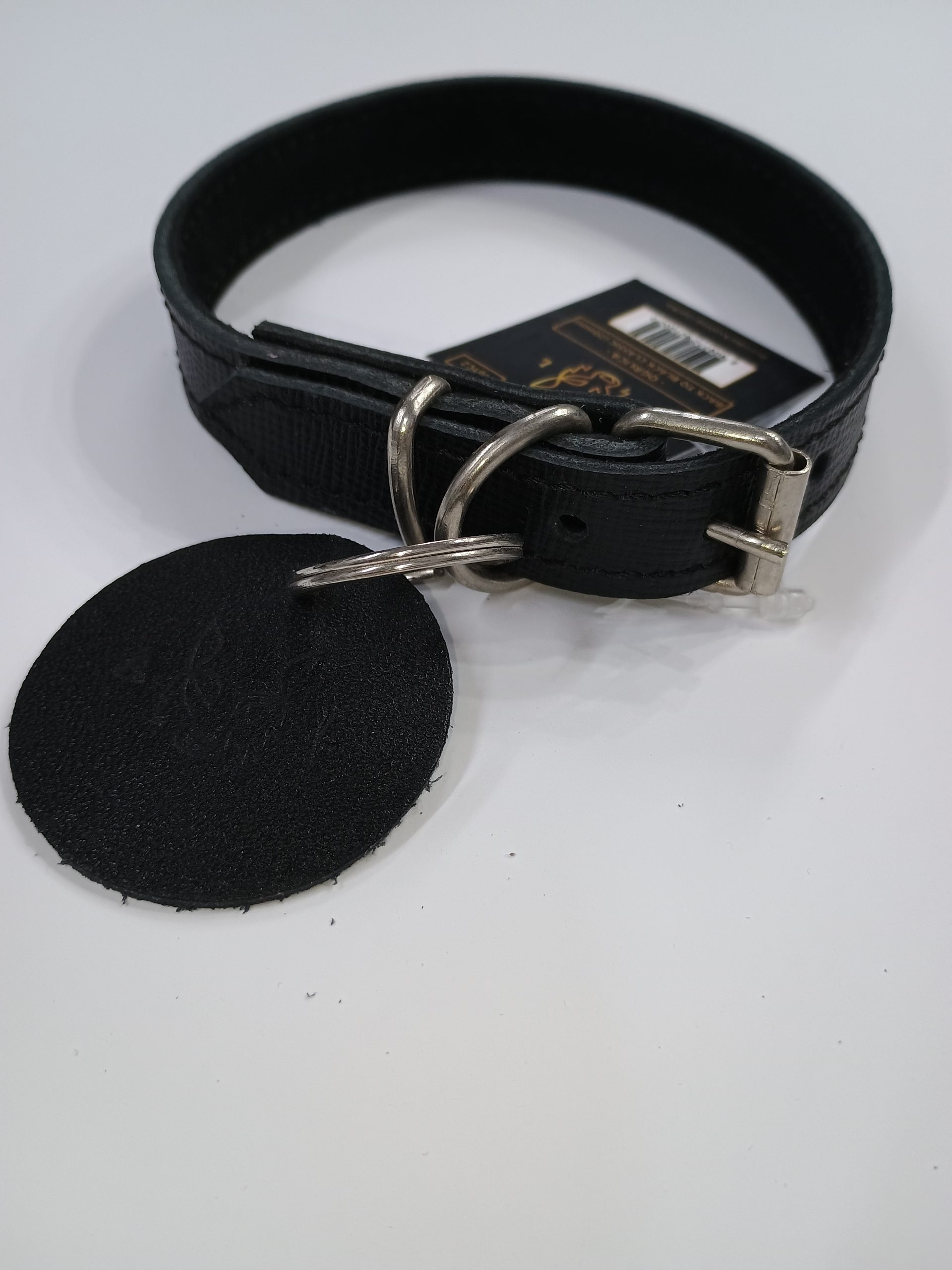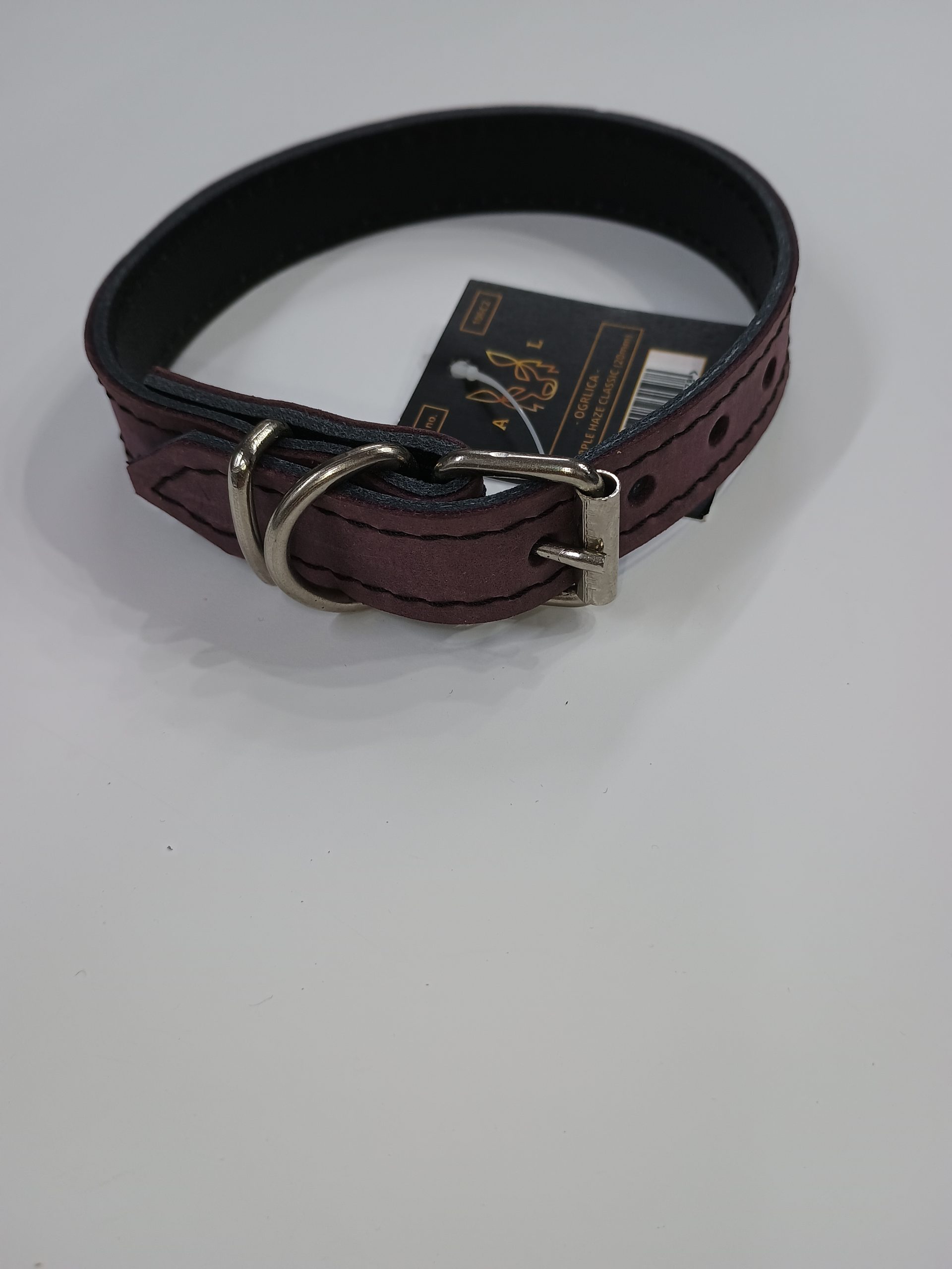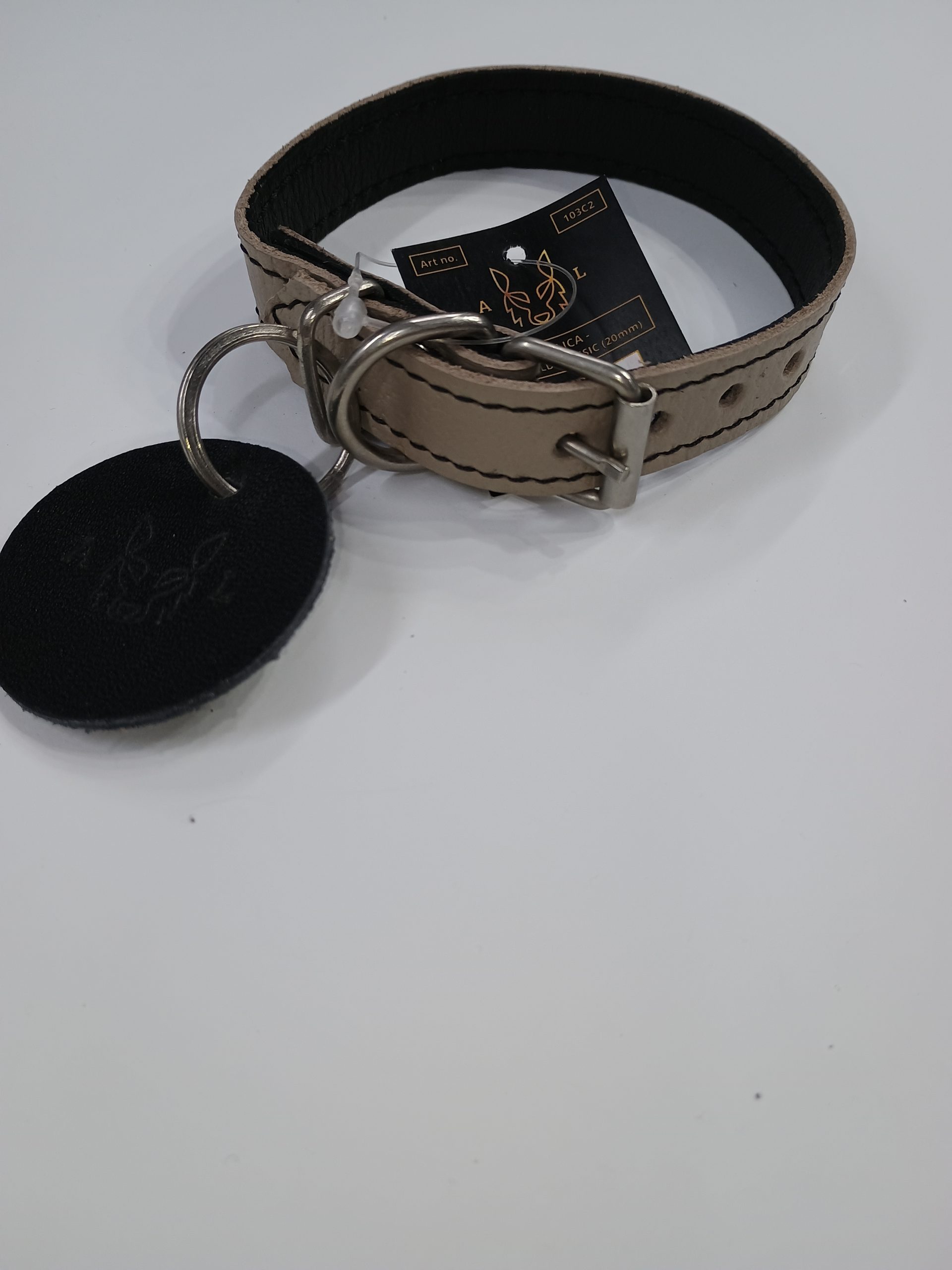 Okovratnik je izrađen od mekane, kvalitetne prirodne kože sa pouzdanim metalnim detaljima. Ima simpatičan kožni privezak koji se može koristiti i kao adresar. Pogodan je za male pse.
