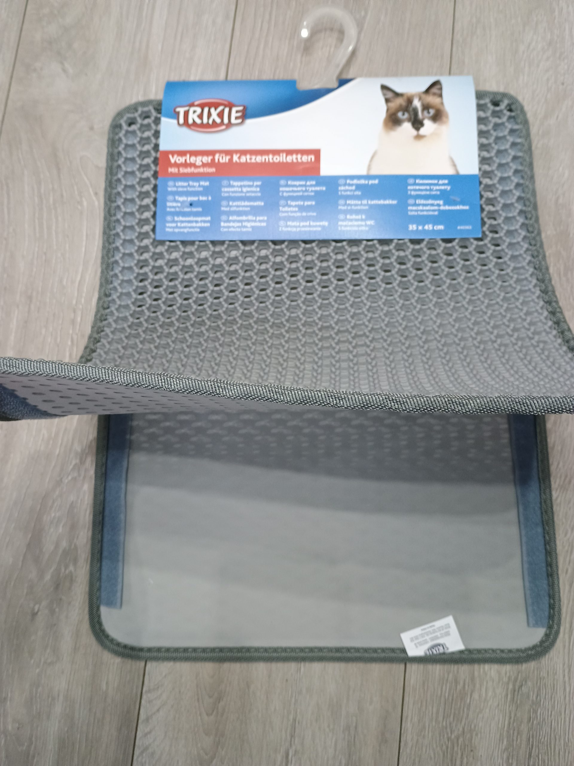 Otirač koji se stavlja oko mačijeg toaleta da zadrži pesak. Ima dva sloja povezana kopčom, lako se čisti