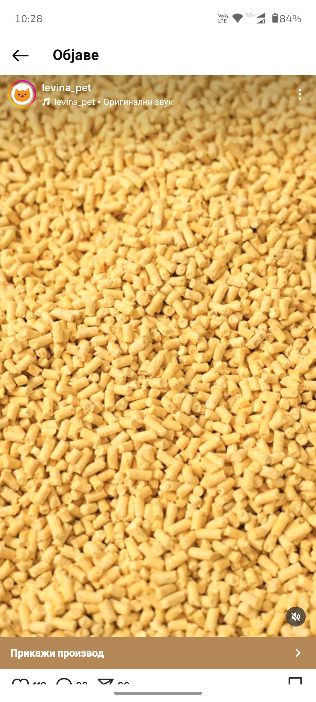 Levina je posip za maciji WC u obliku sitnog peleta, napravljen je na bazi kukuruza po italjanskoj tehnologiji.