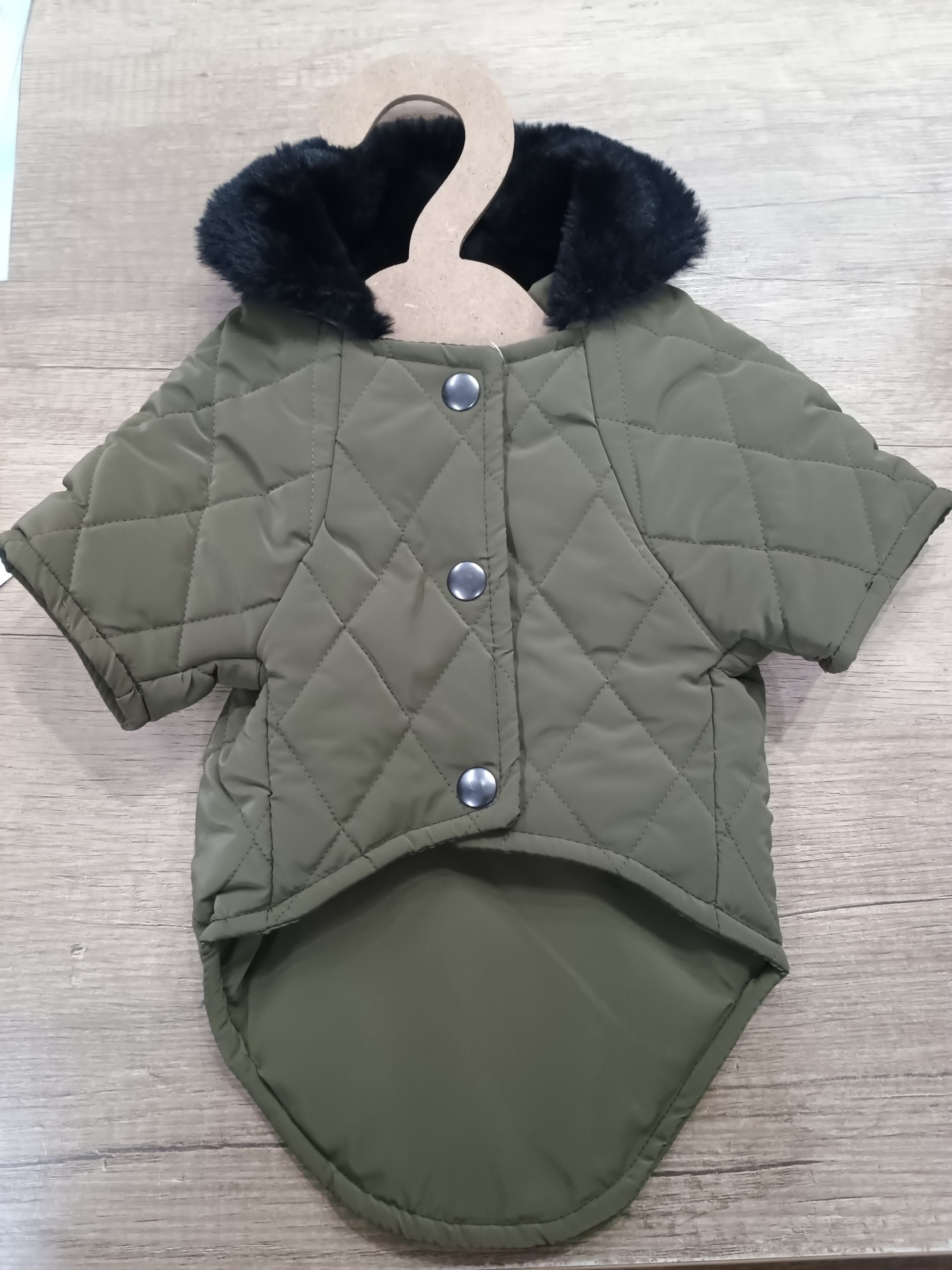 Prošiveni kaput sa 2 nogavice i zatvoretim stomakom. Zakopčava se na dugme na stomaku. Ima otvor za am. Otporan je za kišu i vetar.