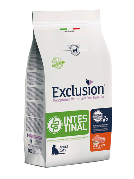 Exclusion Intestinal za mačke sa svinjetinom, pirinčem i graškom 0.3/1.5 kg